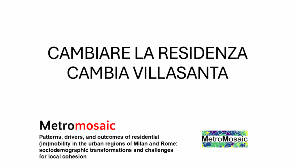 Il progetto METROmosaic – finanziato nell’ambito del Bando 2021 “Ricerca Sociale e Umanistica per una società che cambia” della Fondazione CARIPLO – ha come obiettivo l’indagine dei principali modelli e fattori della mobilità residenziale all’interno delle regioni urbane di Milano e Roma.