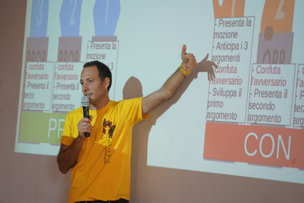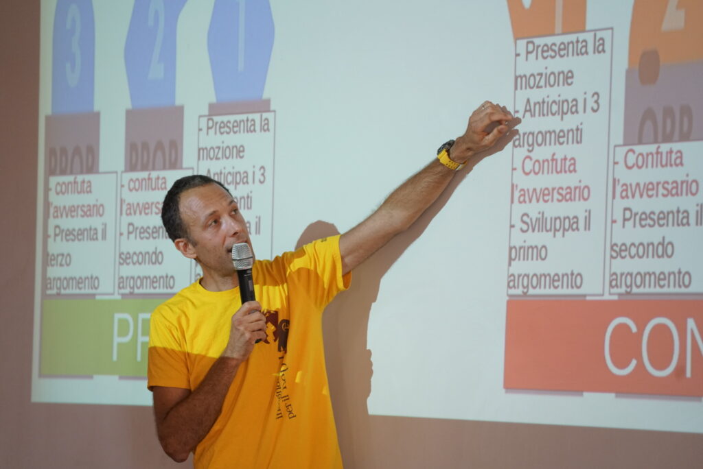 Un secondo laboratorio, sabato 21 settembre, durata 4 ore, sarà invece dedicato, in particolare (ma non esclusivamente), ai docenti delle scuole secondarie di primo e secondo grado e sarà destinato alla conoscenza del “debate“: “La pratica del debate nell’insegnamento della geografia“. Il prof. Matteo Ghislotti Bonaldi – docente d’Italiano – presenta i risultati della sperimentazione compiuta insieme a molti colleghi nell’ambito del debate come attività didattica interdisciplinare con particolare riferimento alle tematiche geografiche. Il corso si articolerà in due ore. Nella prima, dalle 11:30 alle 12:30 si presenterà il Debate e si fornirà un esempio della sua applicazione in ambito curricolare. Nella seconda parte, dopo un tempo per la pausa pranzo, dalle 14:00 alle 15:00 gli insegnanti in formazione e alcuni studenti-debaters collaboreranno all’interno di un workshop in preparazione del dibattito che si terrà alle ore 15:00.