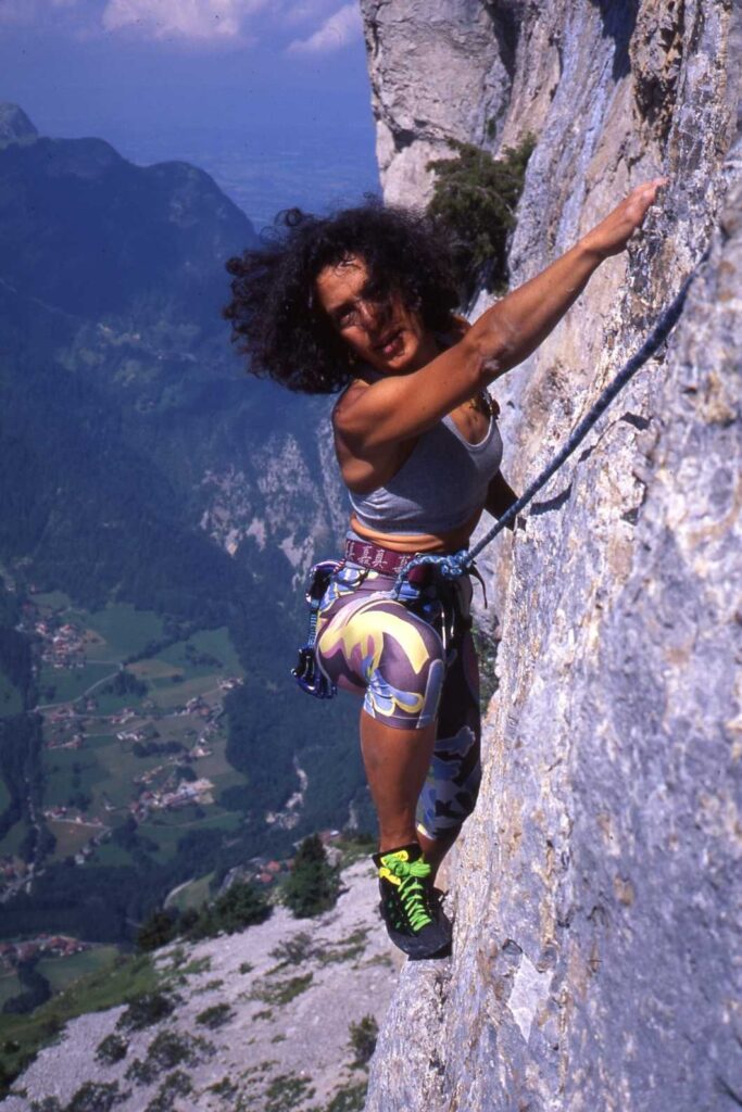 Le sue ascese non si contano: dalle montagne di casa (nel 1977 ha salito in solitaria lo Spigolo Nord del Badile) alle grandi classiche dal granito del Monte Bianco al calcare delle Dolomiti e poi in giro per il mondo.
